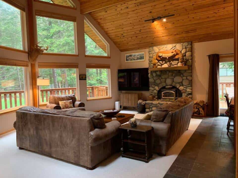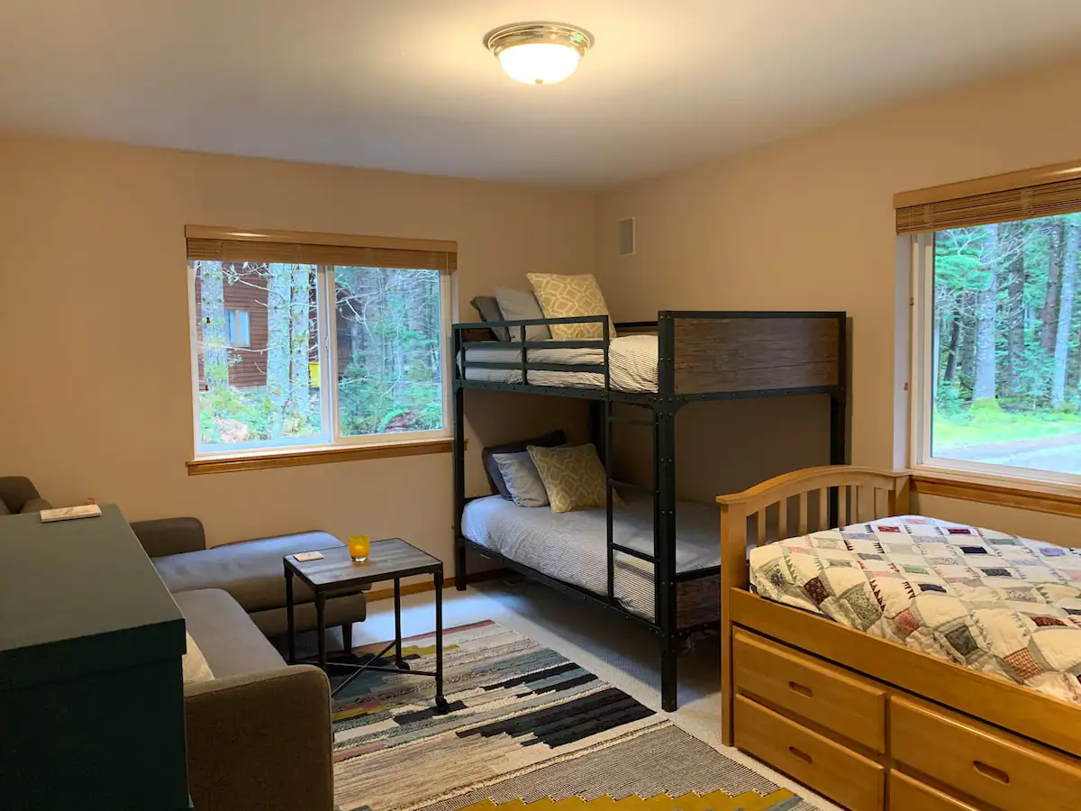This cozy cabin that accommodates up to 8 guests with 4 bedrooms and 3 bathrooms. Situated just 3 miles from Greenwater in Crystal River Ranch, the chalet offers easy access to a range of activities, including nearby Mt. Rainier National Park and Crystal Mountain Resort. Guests can also enjoy the community Ranch House, playground, basketball court, baseball field, stables, and trail access to White River.