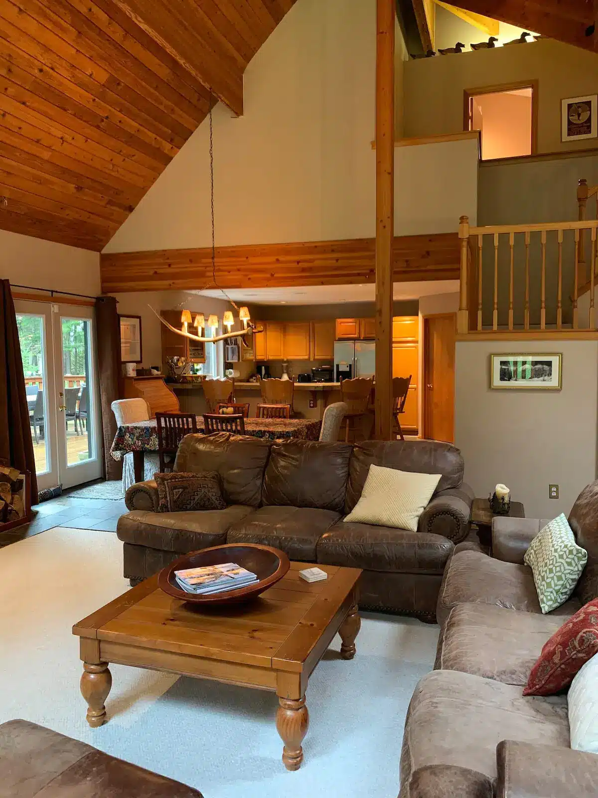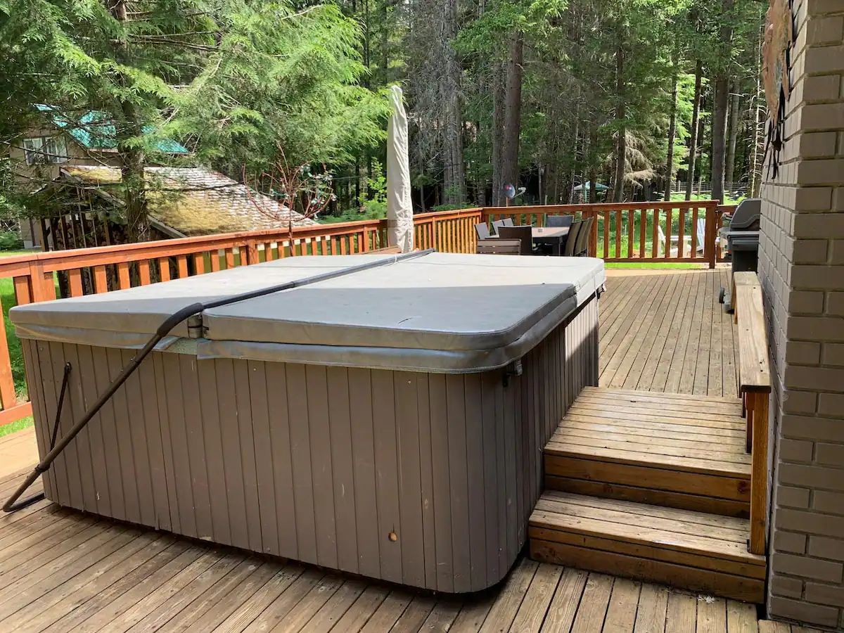 This beautifully furnished home offers many amenities to make your stay comfortable and enjoyable, such as a hot tub, fire pit, and large deck with outdoor furniture and dining area. The large living room with vaulted ceiling and fireplace is perfect for gatherings with friends and family. Forested grounds offer peace and privacy.