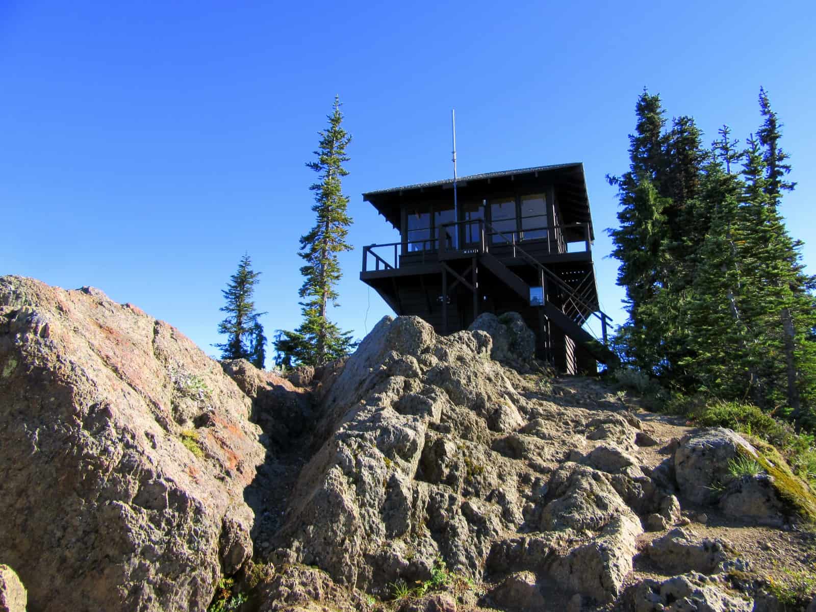 At 5,485-feet, Gobblers Knob is the lowest of Rainier’s four remaining fire lookouts. It used to be the shortest to reach too. Now, you must walk (or bike) 3.8 miles of the closed Westside Road to get to the old trailhead. While this hike is long—it is not difficult. The road is easy walking and the trail is wide and well-graded. The old-growth forest along the way is magnificent and Lake George makes for a nice lunch spot; or if you’re inclined to spend the evening—a great camping spot. And the views? Breathtaking to the point that you just may need a little resuscitation!
