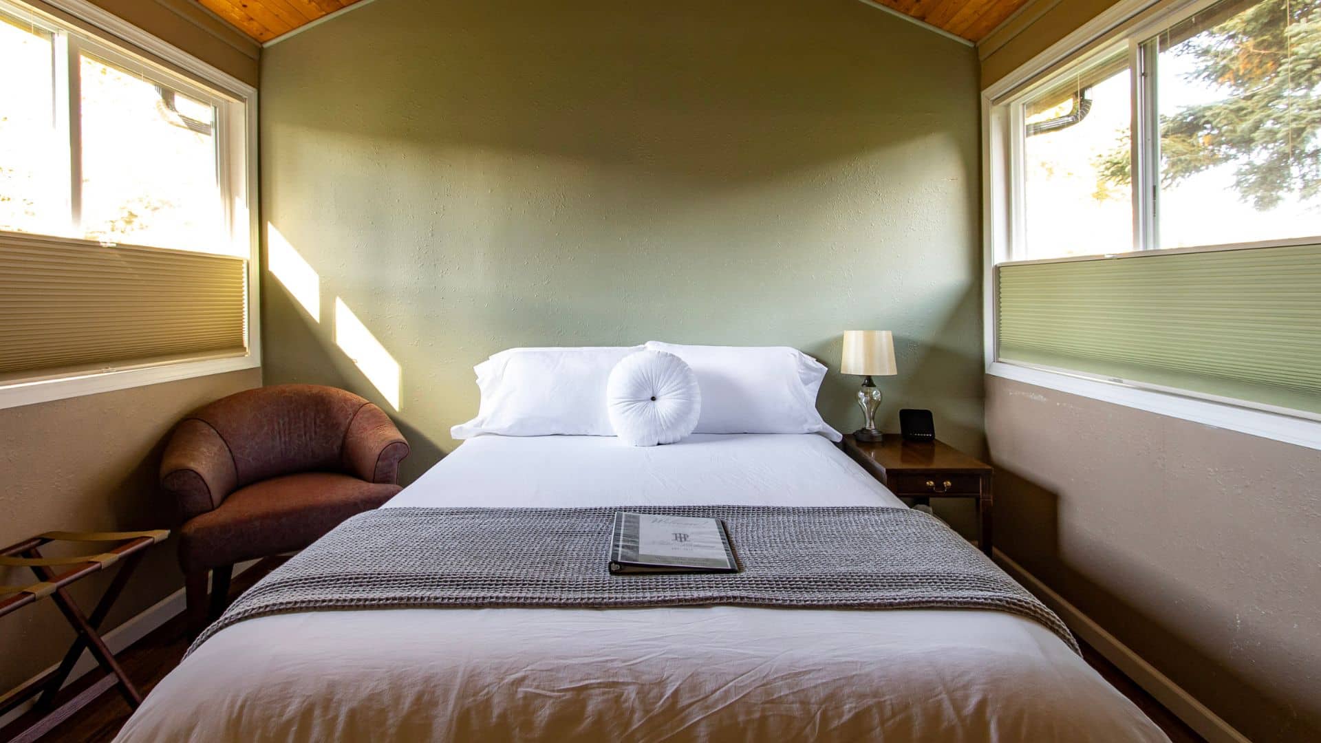 For over a century visitors to Packwood pulled up a chair on the inviting veranda. Once you see the space you can understand why. From this vantage point, guests can watch the local elk herd, take in views of Rainier and enjoy the sweetness of mountain life. Today the tradition continues with updated amenities and modern conveniences like WIFI. The covered porch space continues to be an ideal spot for guests to gather. The hotel has two main floors. Eight of the guest rooms and suites are on the hotel’s second floor, with the ninth in the adjacent ground-floor cabin. Each room accommodates one or two guests. Please note, occupancy is firm, no cots or cribs are available at this time. Second-floor rooms are all accessed by stairs. There is no elevator in the Historic Hotel Packwood.