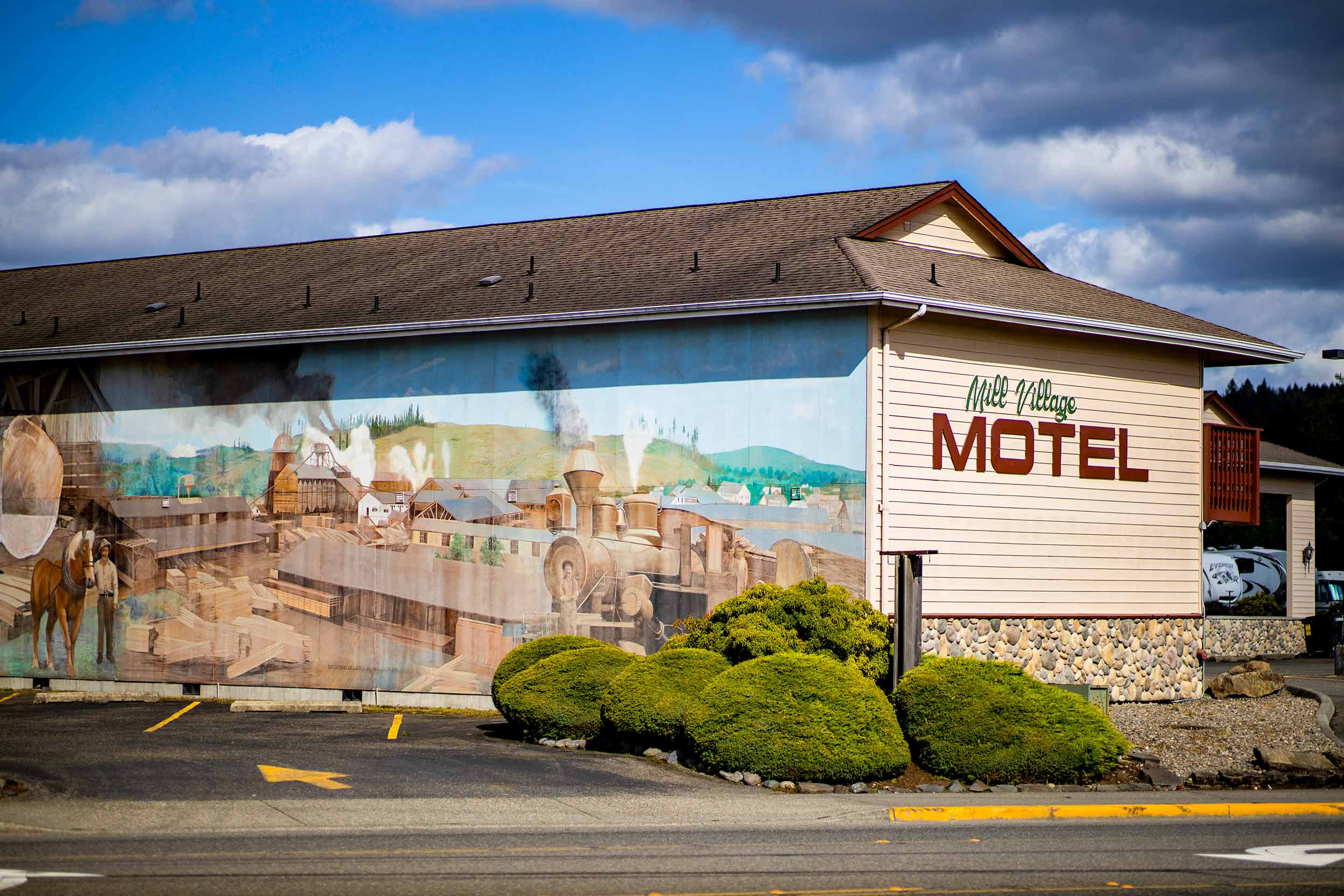 On a clear day as guests arrive at the Mill Village they may be distracted gawking at views of Mount Rainier from the parking lot. You may not notice the mural on the side of the building. The mural tells the story of the early days of Eatonville. Images of days gone by when steam engines and lumber were king plaster the side of the motel. Next door to the motel is Bruno’s restaurant offering hearty plates of food for breakfast, lunch and dinner. Bruno’s has indoor and outdoor dining, an extensive menu and generous portions. Across the street from the motel is the hot new destination restaurant in town, Mill Haus Cider Co. known for its ambiance, crisp locally sourced ciders, and delicious food. Guests of the Mill Village are within easy walking distance of shops, antiquing, and other dining.