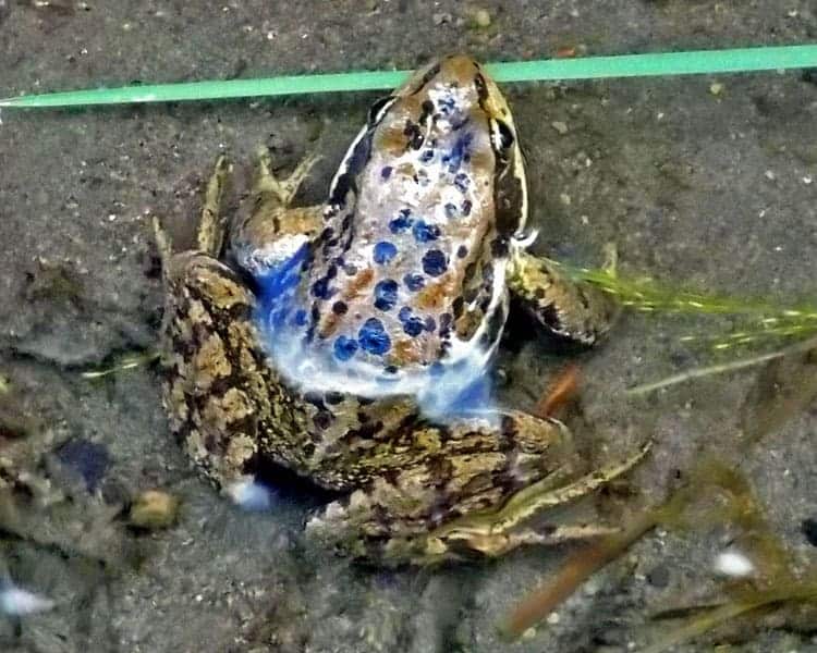 Not far from the boggy stretch we spotted an obvious trail heading down to the river and thought that might be where to cross (that is apparently the horse-ford), however, it’s not a hiker-crossing unless prepared to wade. Since we didn’t feel like wading we walked along the river and though we found no sign of a bridge or trail, we did find a frog and a fisherman’s path along the river that was well-worth pursuing. The path led to a bend in the river where Fifes Peak was reflected in the still water, a beautiful and tranquil scene.