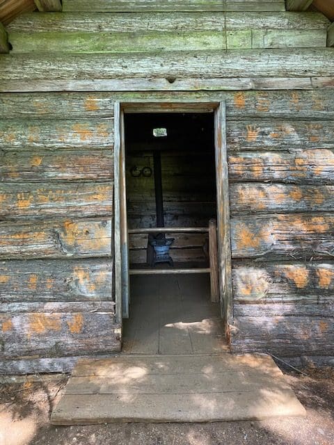 Past the cabin is “Iron Mike” another spring bordered by rock walls giving it a primitive look, like a ruin you might find in a lost jungle. The water that trickles down the ramp from the spring is rust-colored, almost the color of molten lava. A cautionary note – do not drink the water as there are toxic substances in the water.