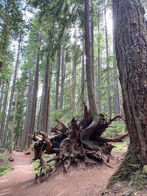 This well-signed loop trail is easily accessed across from the Longmire National Inn on the main road – you can hike the loop in either direction (we hiked counterclockwise).